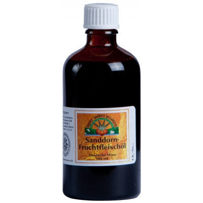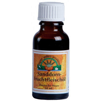 Sanddorn Fruchtfleischöl eignet sich als Nahrungsergänzung sowie als wirkstoffreiches Hautpflegeöl.